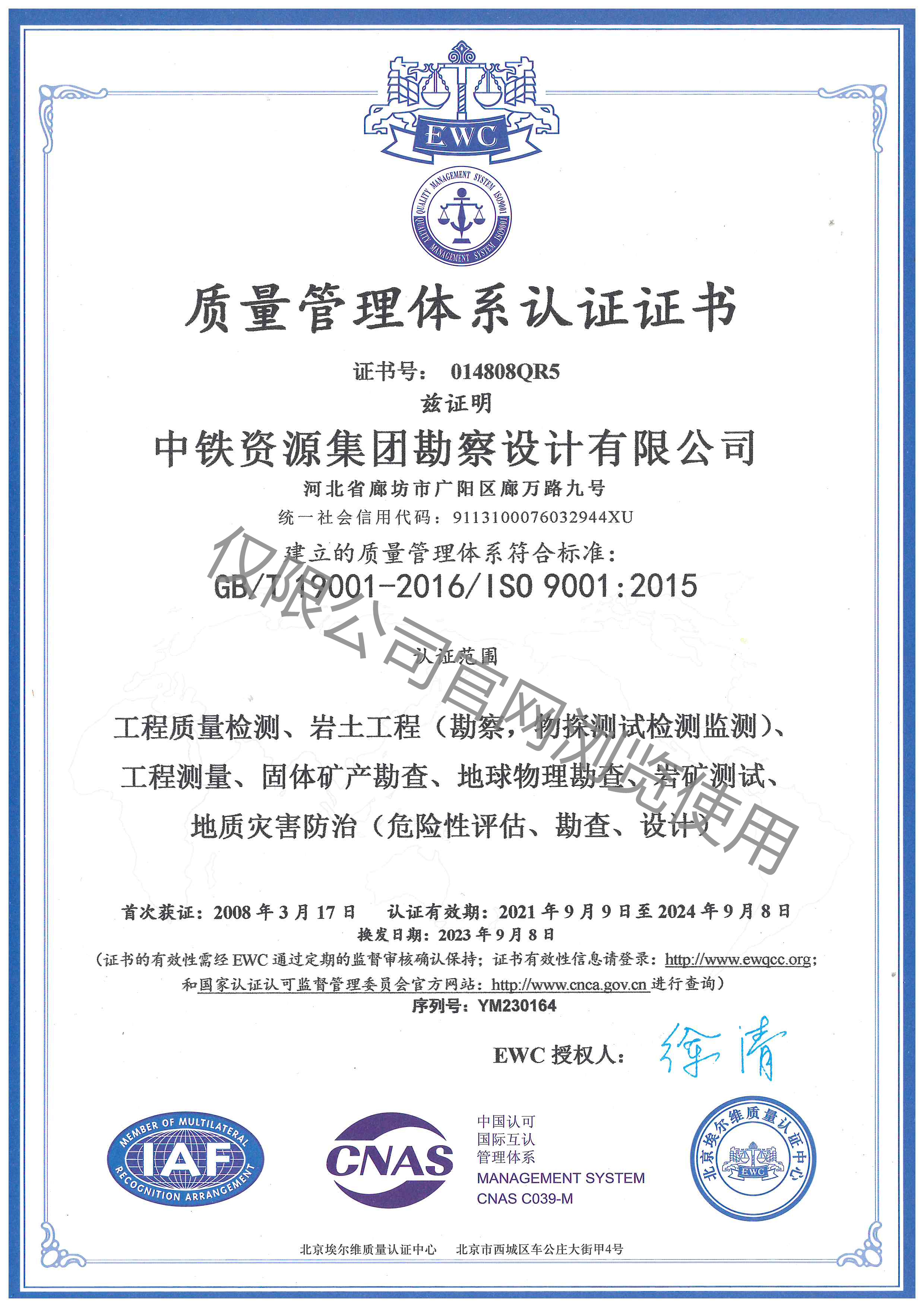 質(zhì)量管理體系認(rèn)證證書