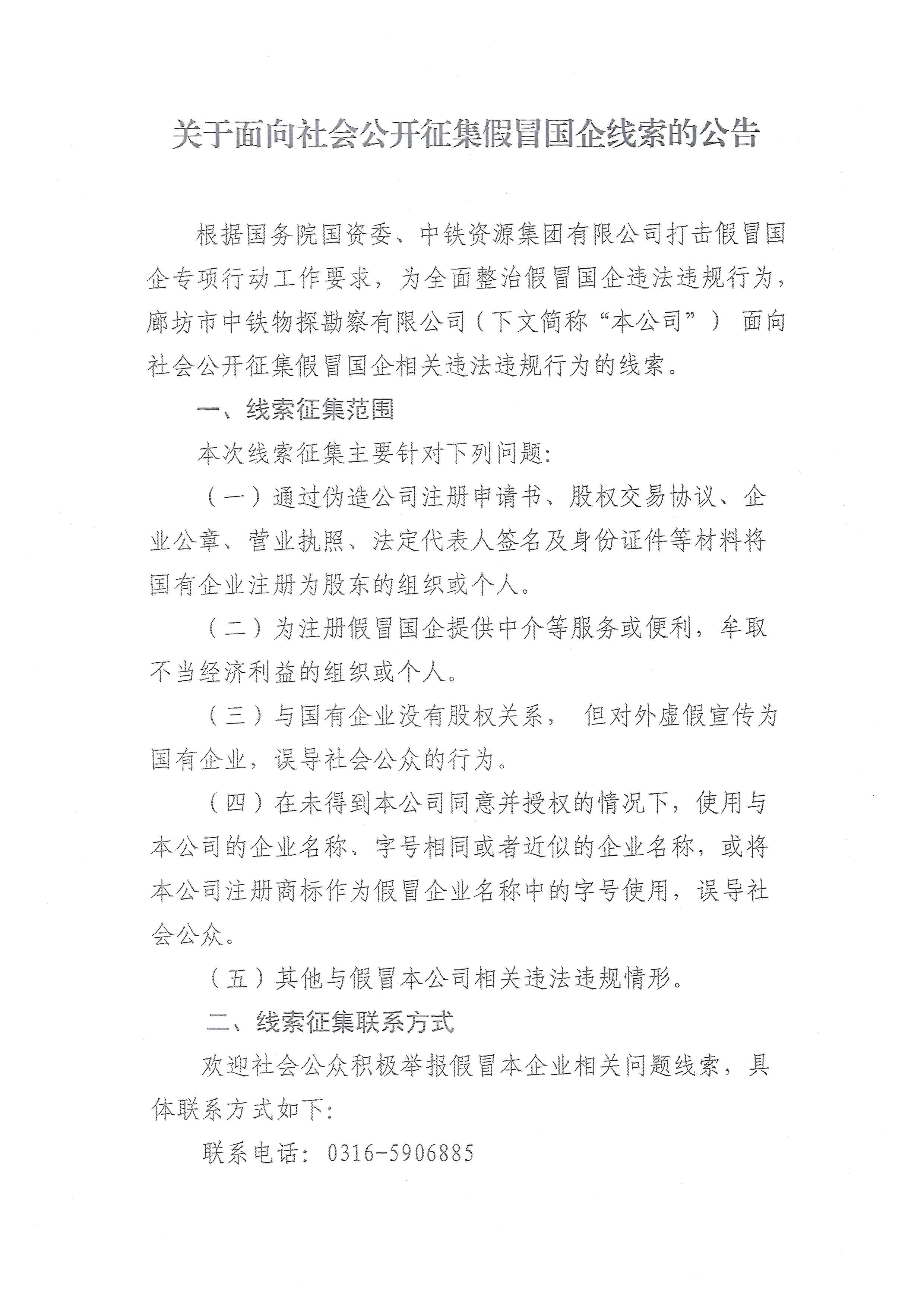 關(guān)于面向社會(huì)公開征集假冒國(guó)企線索的公告